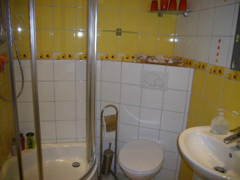 - Dusche - Handtuchheizkörper - Hänge-WC - Waschbecken - Spiegel - Waschmaschine |