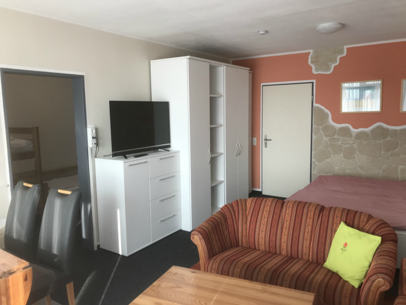 - Doppelbett (180x200) - Couchgarnitur - Kleiderschrank - Flat-TV 43" - digitaler SAT-Anschluss - Radio/CD-Spieler - Insektenschutztür - Verdunklungsgardinen