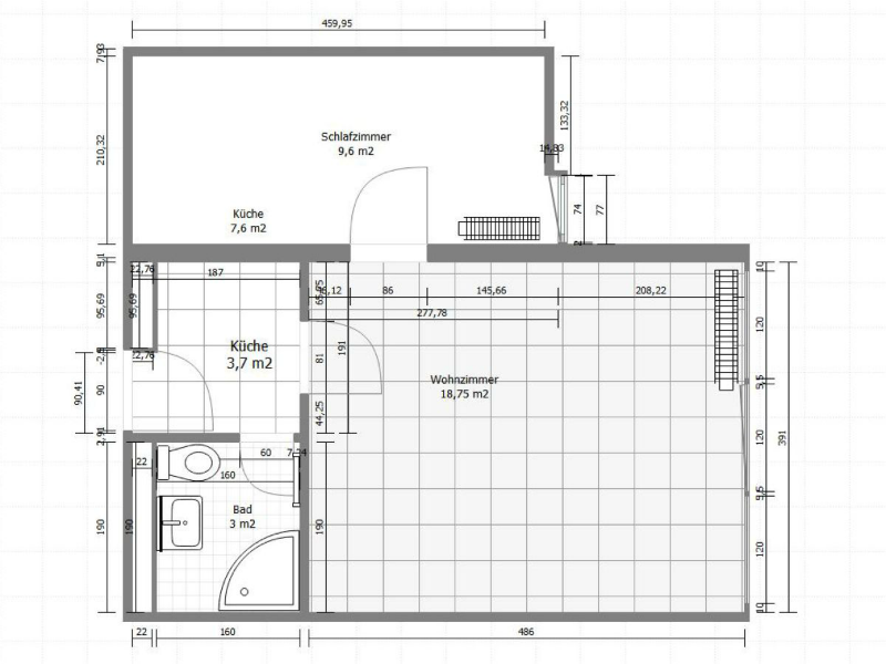 Ausstattung 2 Zimmer/kleine Küchenzeile/Bad