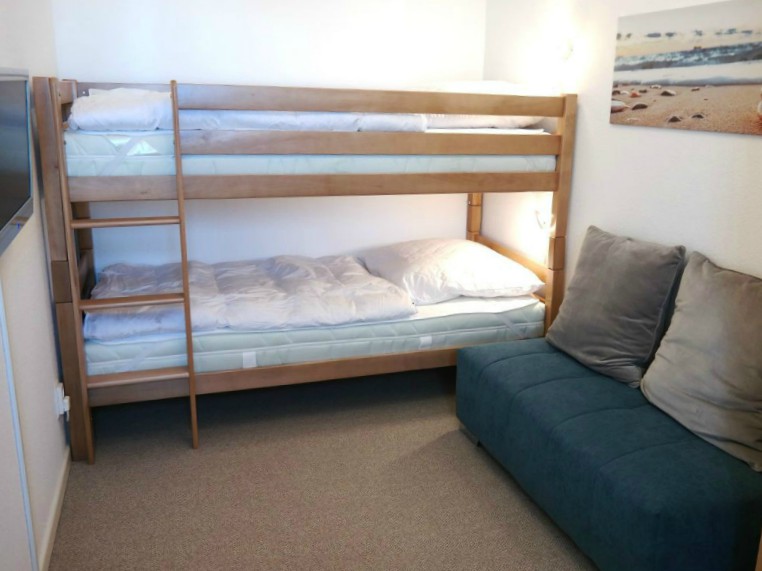 - 1 Etagenbett - 1 kleines Sofa - Kinderreisebett - Kleiderschrank - Fernseher - DVD-Player